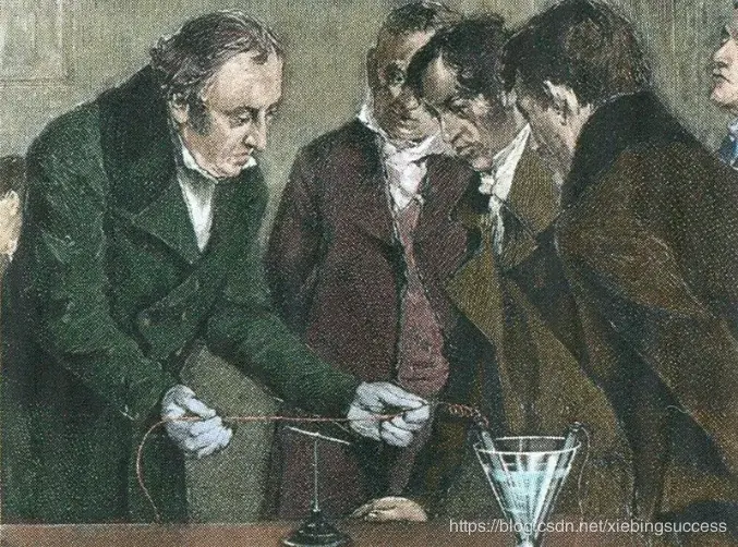 1820年,奥斯特在一次讲座上偶然发现通电的导线让旁边的小磁针偏转了一下,这个微小的现象并没有引起听众的注意,但是可把奥斯特给高兴坏了。他立马针对这个现象进行了三个月的穷追猛打,最后发现了电流的磁效应,也就是说电流也能像磁铁一样影响周围的小磁针。