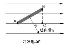 问题2:还是上面的木板和电场,如果木板跟电场的方向不是垂直的,它们之间有一个夹角θ,那这个电通量又要怎么求呢?