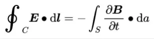 所以,麦克斯韦方程组的第三个方程——法拉第定律的最后表述就是这样的:曲面的磁通量变化率等于感生电场的环流。用公式表述就是这样: