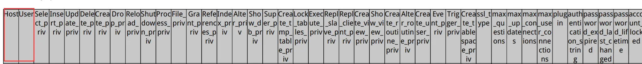 File_priv。确定用户是否可以执行SELECT INTO OUTFILE和LOAD DATA INFILE命令。