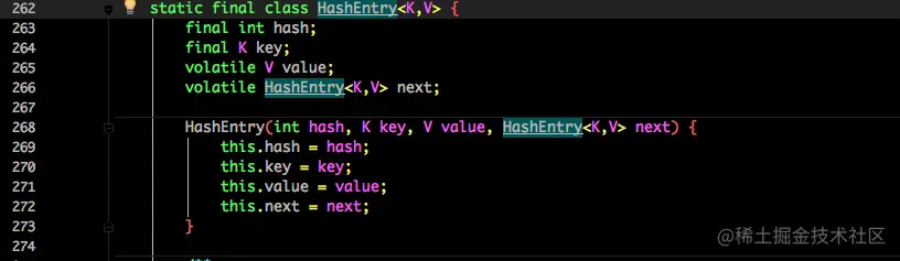 - 将当前的 Segment 中的 table 通过 key 的 hashcode 定位到 HashEntry