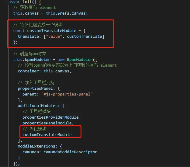 刚刚下好了那两个文件基本来说汉化操作已经完成了百分之九十了,只要进行最后的将它载入到我们的 Bpmn.js 编辑器即可。