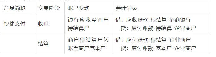 下面以快捷支付收单为列