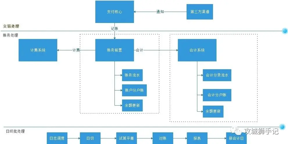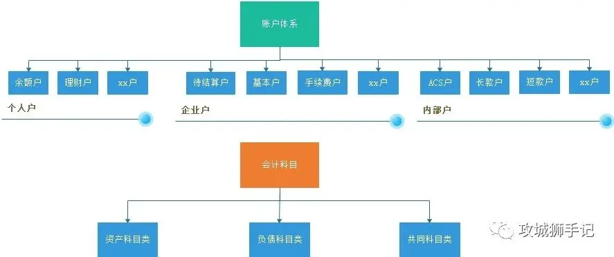一笔交易至少在账务系统中产生一条账户流水记录(明细账),同时会在会计系统中根据业务规则产生一套或者多套会计分录流水,账户余额与会计余额想对应。账务系统是对外客户提供账户支持,客户的查询余额,明细都是来源于此;会计系统是为了内部核算管理的需求设定的,所有银行资金清算与结转都需要会计系统的支撑,内部户与外部户的资金核算管理也需要会计系统,两个系统相互依赖,账户系统是会计系统的前置。