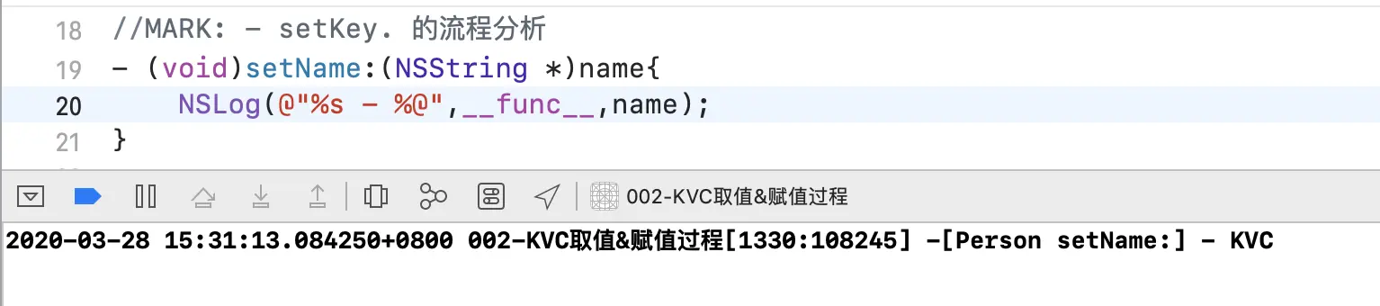 KVC(Key Value Coding)键值编码:一个基于NSKeyValueCoding非正式协议实现的机制,它可以直接通过key值对对象的属性进行存取操作,而不需通过调用明确的存取方法。这样就可以在运行时动态在访问和修改对象的属性,而不是在编译时确定。