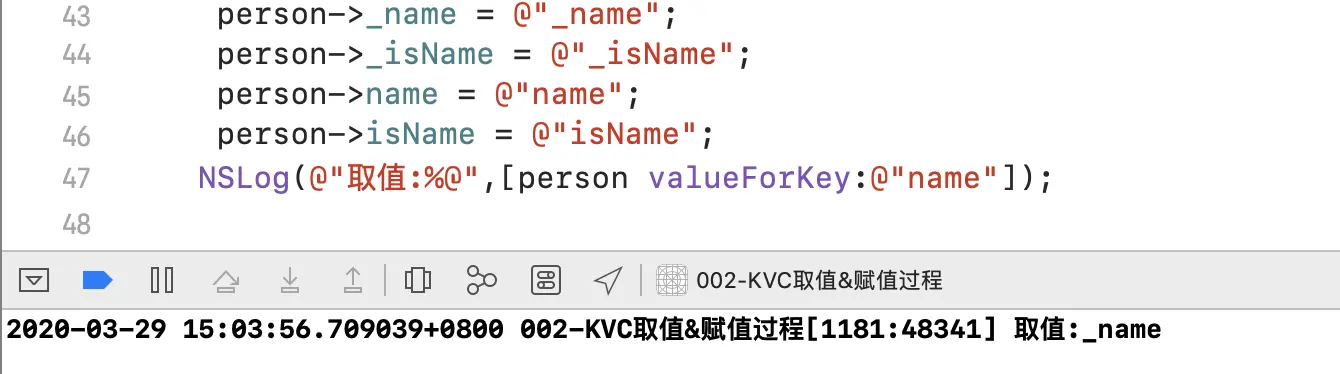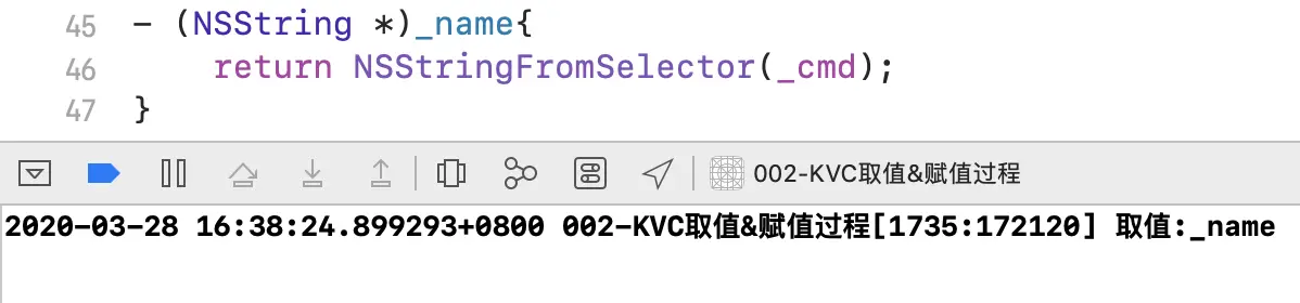 4、如果找不到简单的访问器方法或集合访问方法组,并且接收者的类方法accessInstanceVariablesDirectly返回YES,则搜索名为_ <key>,_ is <Key>,<key>或is <Key>的实例变量, 以该顺序。 如果找到,请直接获取实例变量的值,然后继续执行步骤5。否则,请继续执行步骤6。