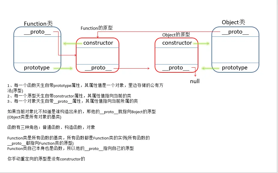 - 每一个对象天生自带__proto__属性,其属性值指向当前所属类的原型(IE浏览器不允许我们操作__proto__属性)