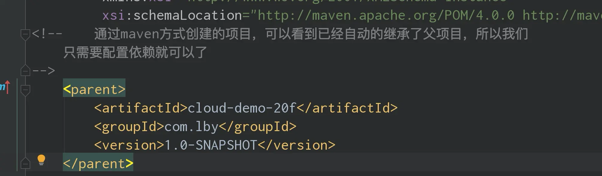 <!-- 通过maven方式创建的项目,可以看到已经自动的继承了父项目,所以我们