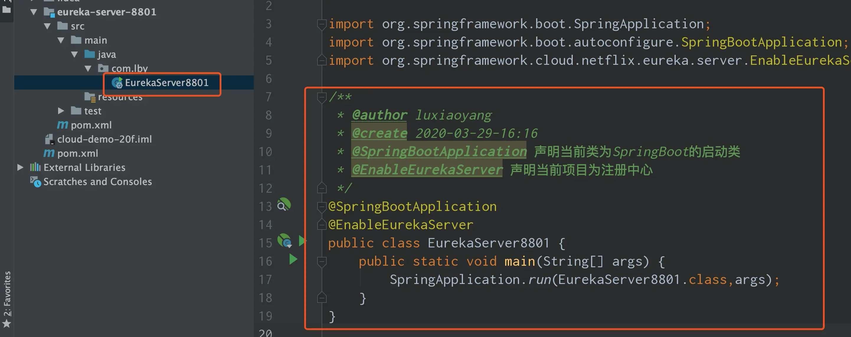 * @EnableEurekaClient 声明当前项目为一个 Eureka客户端