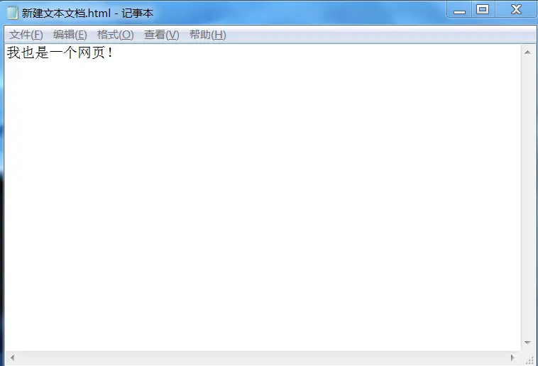- 下面我们就先简单写一个页面,看下效果(为了简单,我们暂时先用记事本创建一个 txt 文档,然后把它的后缀改成.html,这样,这个文件就从 txt 文本文档变成了一个网页文档)