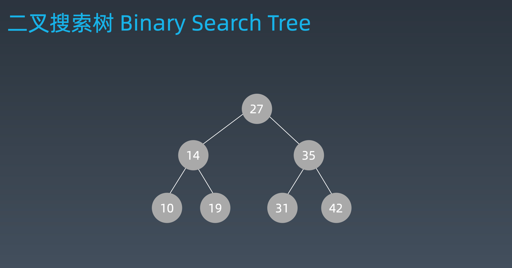 二叉搜索树,也称二叉搜索树、有序二叉树(Ordered Binary Tree)、 排序二叉树(Sorted Binary Tree),是指一棵空树或者具有下列性质的二叉树: