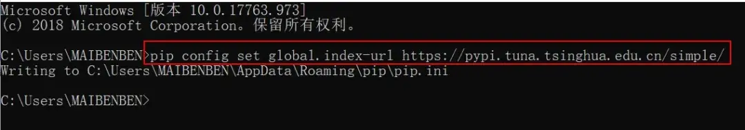 pip config set global.index-url https://pypi.tuna.tsinghua.edu.cn/simple/