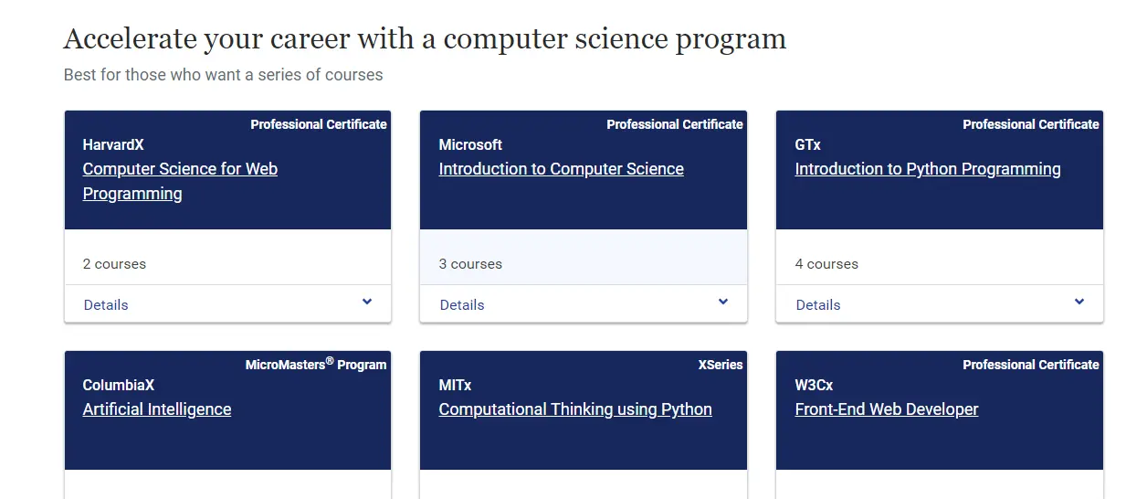 该网站包含顶尖大学和大公司的计算机科学和编程相关课程