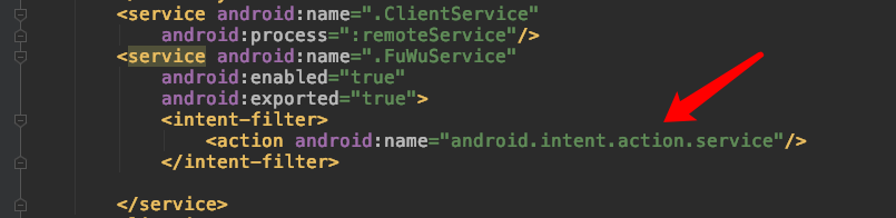 b)服务器创建的service中要设置exported=true和enabled=true,设置action,如上文,客户端连接服务器时,要和我这里的设置保持一致。
