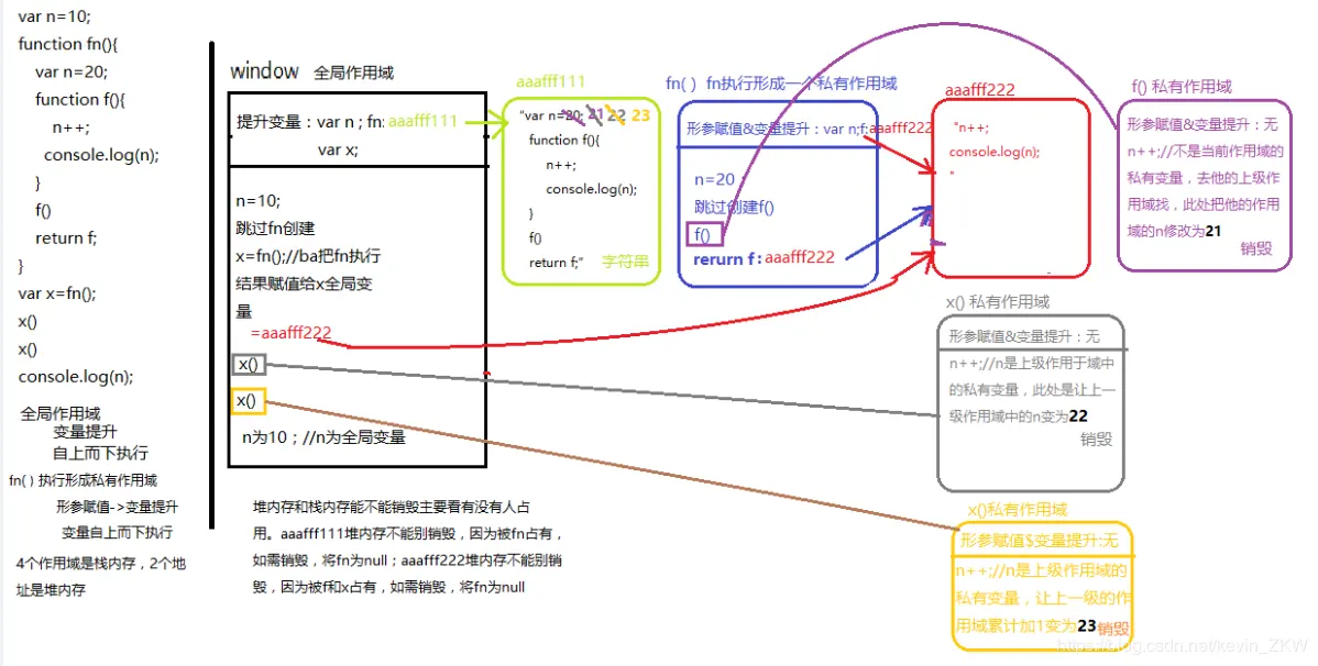 - 函数执行完成,当前形成的栈内存中,某些内容被栈内存以外的变量占用了,此时不能释放(一旦释放,外面找不到原有的内容了)