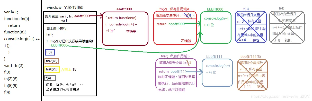 当前函数执行,形成一个私有作用域a,a的上级作用域是谁,和他在哪执行的没有关系,和他在哪创建(定义)的有关系,在哪创建,他的上级作用域就是谁