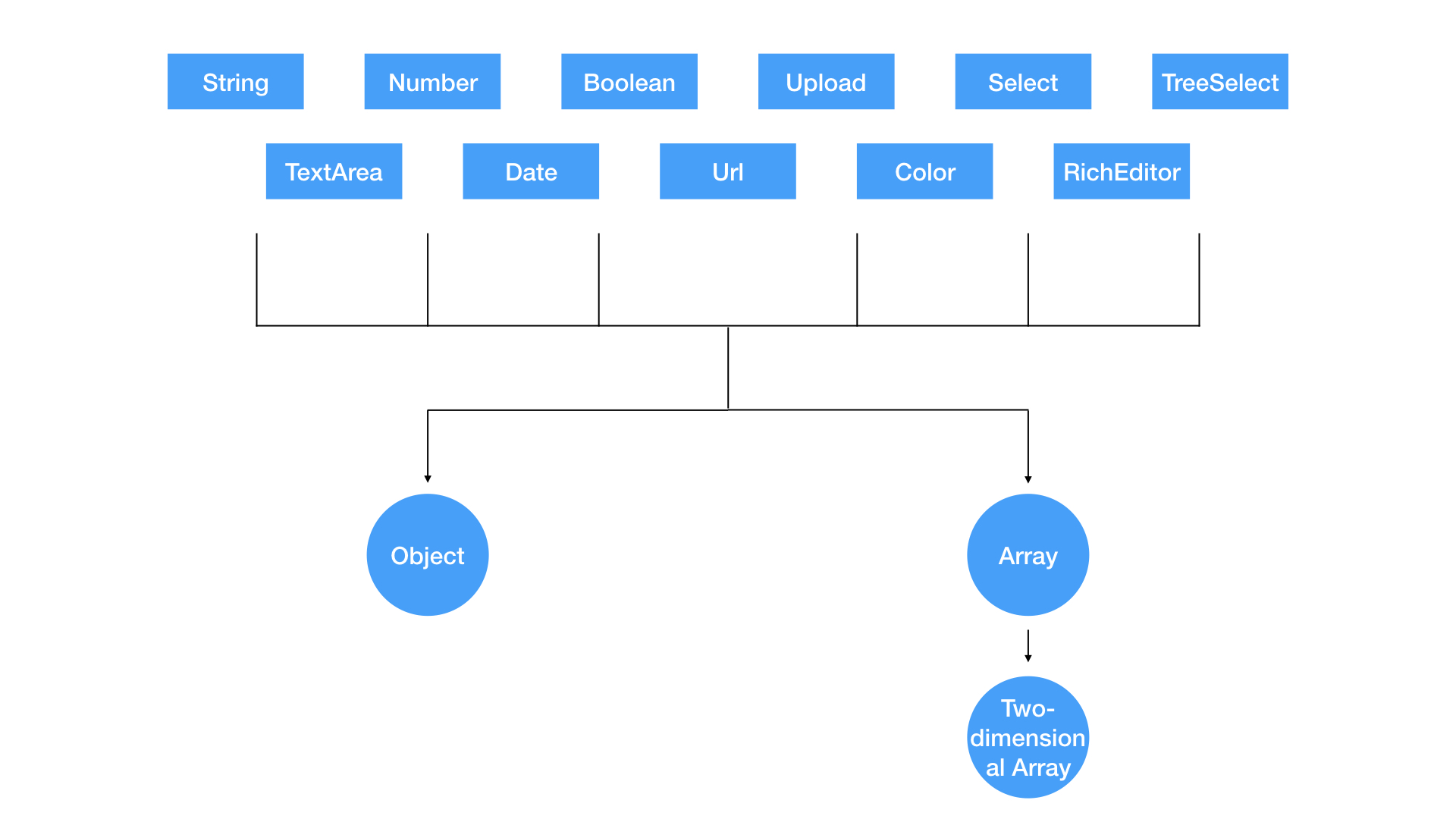 - No-code,无代码开发,即非编程人员可直接使用可视化搭建来组装界面,从而转移生产关系(前端无需参与),从而释放前端资源;