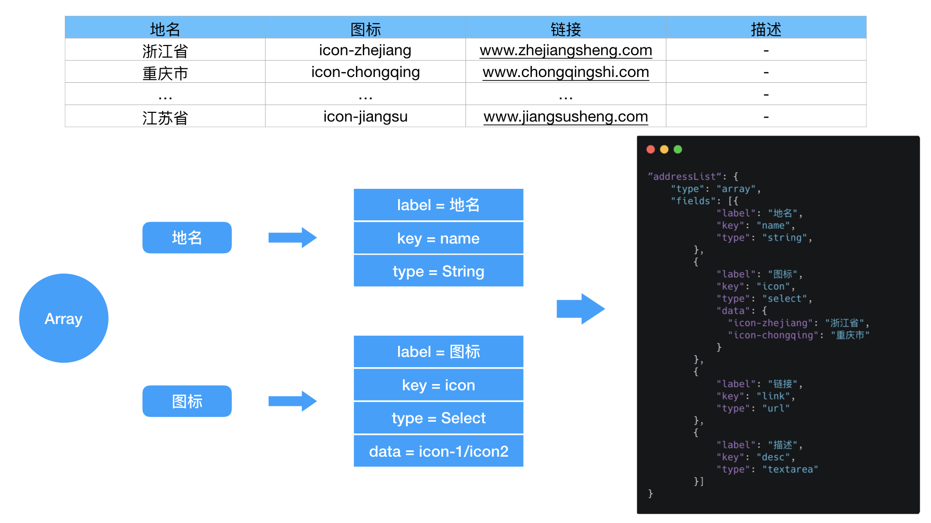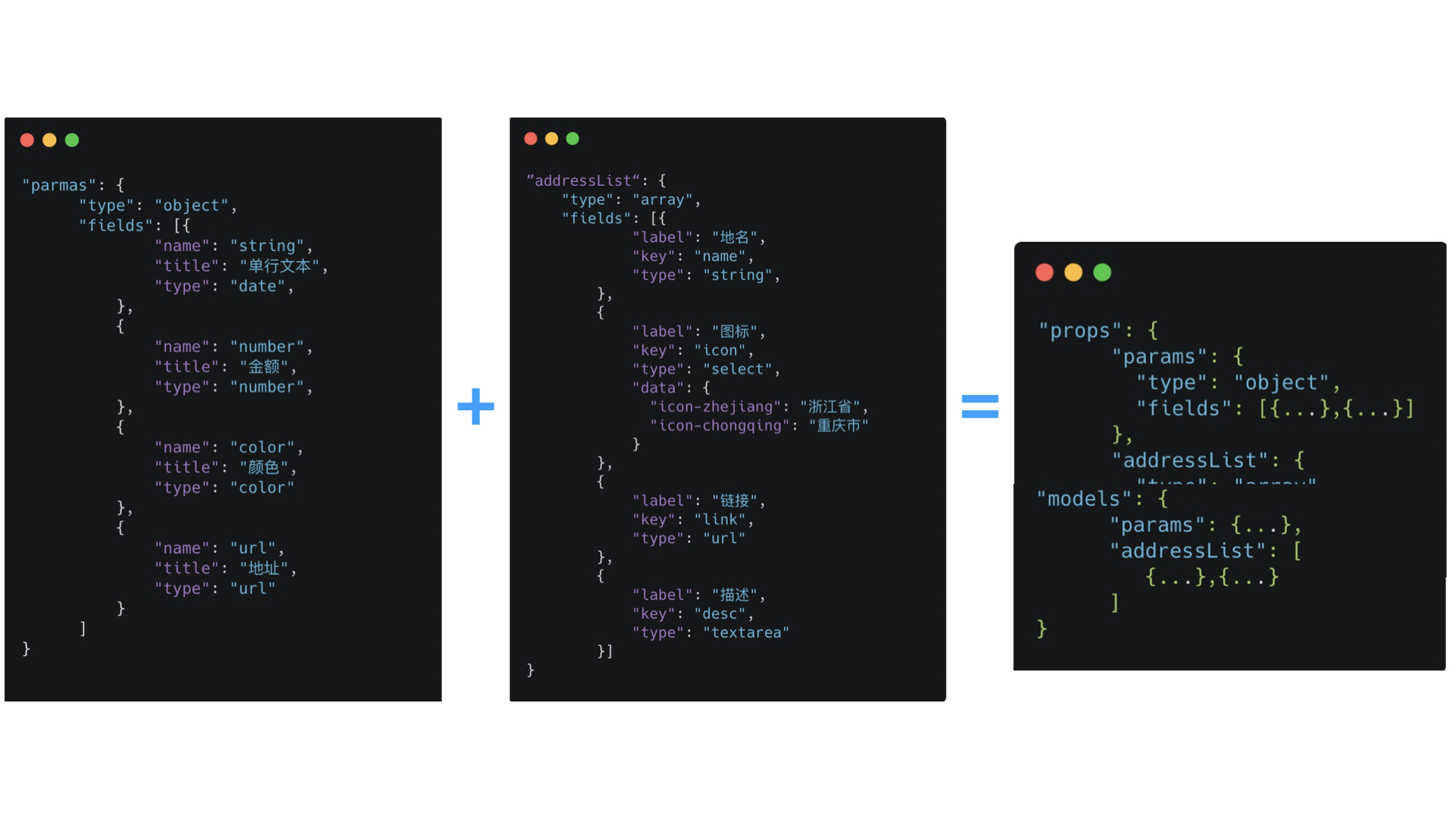 - JSON Schema,JSON 模式是一种基于 JSON 格式定义 JSON 数据结构的规范,可以理解为是对 JSON 的一种约束。可以用于接口的数据校验, 表单提交前的校验, 前后端同构的校验, 如果有中间数据处理层, 接收多方数据, 用 JSON Schema 来保证数据一致性也是一个比较好的实践。