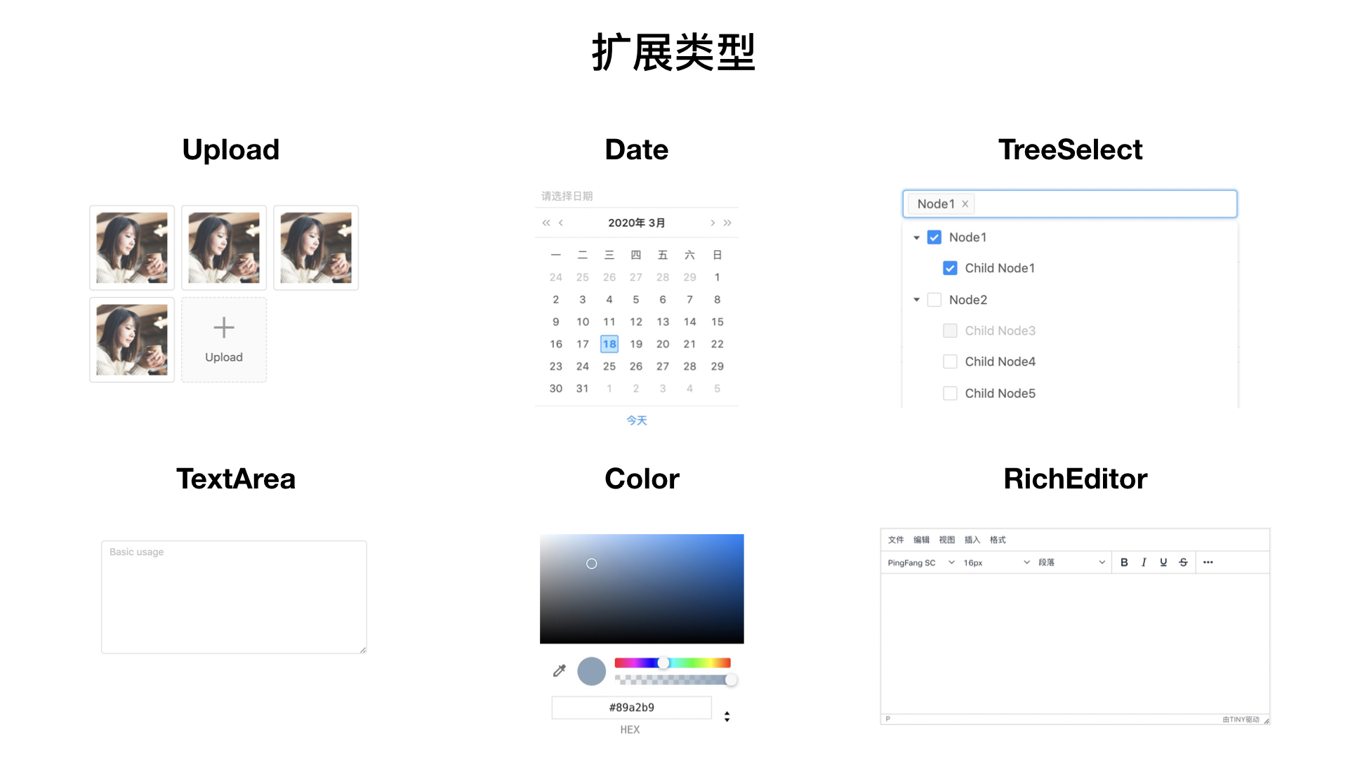 - 编辑器,可理解为页面可视化搭建, 是一个历久弥新的话题. 更广义上讲, 页面是 GUI 的一部分, GUI 的拖拉生成在各种开发工具上很常见。前端页面早在十几年前就能用 Dreamweaver 等工具可视化搭建出来虽然说 Dreamweaver 死了, 但是页面可视化搭建工具依然广泛需要和使用, 所以这个话题依然值得探讨。