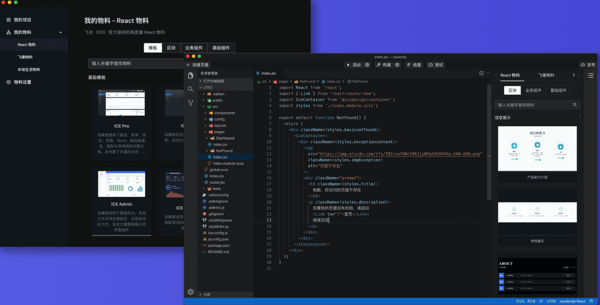 为了使平台编辑器有更好的交互体验,我们需要物料库的支撑。物料生态的搭建离不开元件搭建、组件搭建、区块搭建、模板搭建等,然后发布物料,实现物料共享。除了平台发布的物料之外,用户可自定义物料。