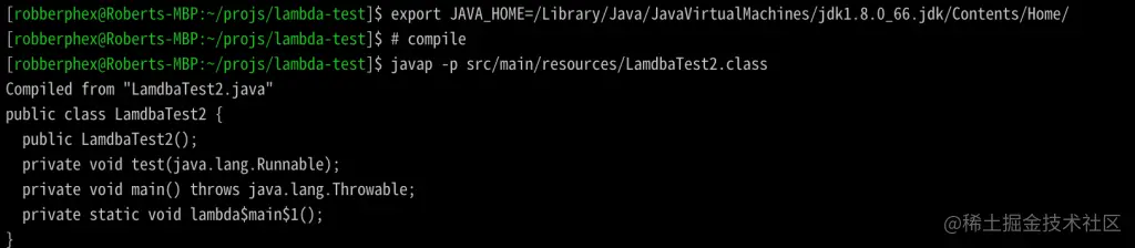 使用1.8.0_222-b10(新版本jdk)跑完了之后,发现LamdbaTest2中的lambda方法是: