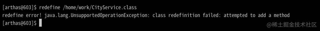 redefine error! java.lang.UnsupportedOperationException: class redefinition failed: attempted to add a method