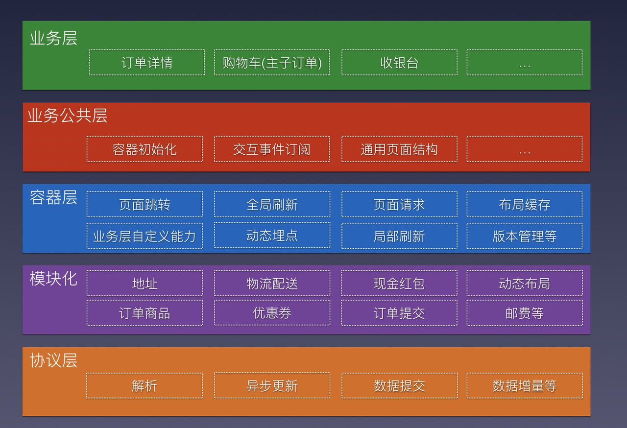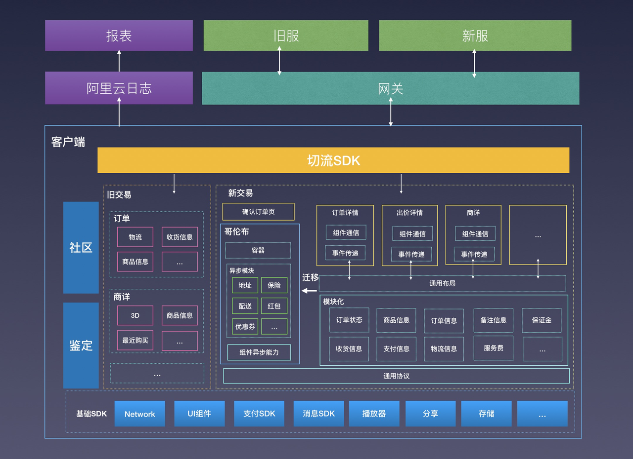 主要目标交易线重构包括DB拆分、DDD领域模型引入、支持业务高可编排。客户端引入哥伦布项目增强前端动态化能力
