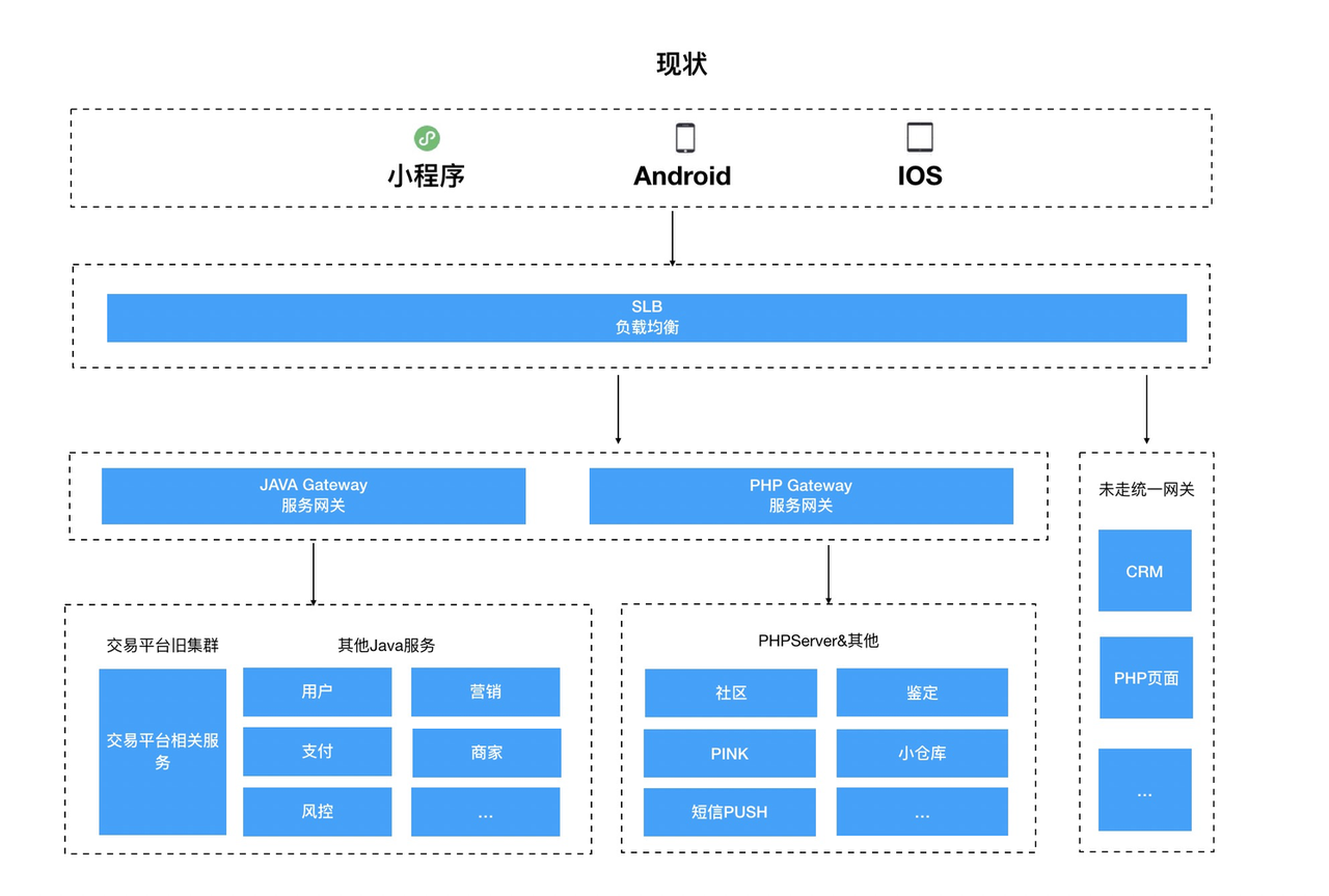 得物、Lazada、Daraz都存在各自历史问题。Lazada和Daraz由于技术积累原因,线上可用时长都不高。采用阿里成熟技术栈进行系统可用性提升、稳定性提升、迭代效率提升。采用了切流的方式对整个系统进行锐变。得物也是存在历史欠债。业务跑的太快,前期太多兼容逻辑,后续开发越来越痛苦。 导致牵一发而动全身,线上问题越来越多。整个交易的重构对交易db进行分拆。同时采用DDD领域模型提升系统可塑性,为后续更复杂的业务承载做基础准备。虽然经历过lazada和daraz的4次切流,但是得物碰到的问题还是不同的。比如lazada、daraz对服务切流采用一刀切不存在新老共存情况。得物由于是部分系统改造,因此整个切流方案得物更复杂。lazada和daraz由于是整个服务一刀切,因此受影响的业务更广,对数据迁移比得物更复杂。当然lazada和daraz还有海外团队协作沟通的问题(团队成员包括了俄罗斯、越南、巴基斯坦、印度)。不同的应用都有各自的切流细节。下面将详细介绍整个得物切流方案的技术选型过程以及与lazada和daraz的主要区别。