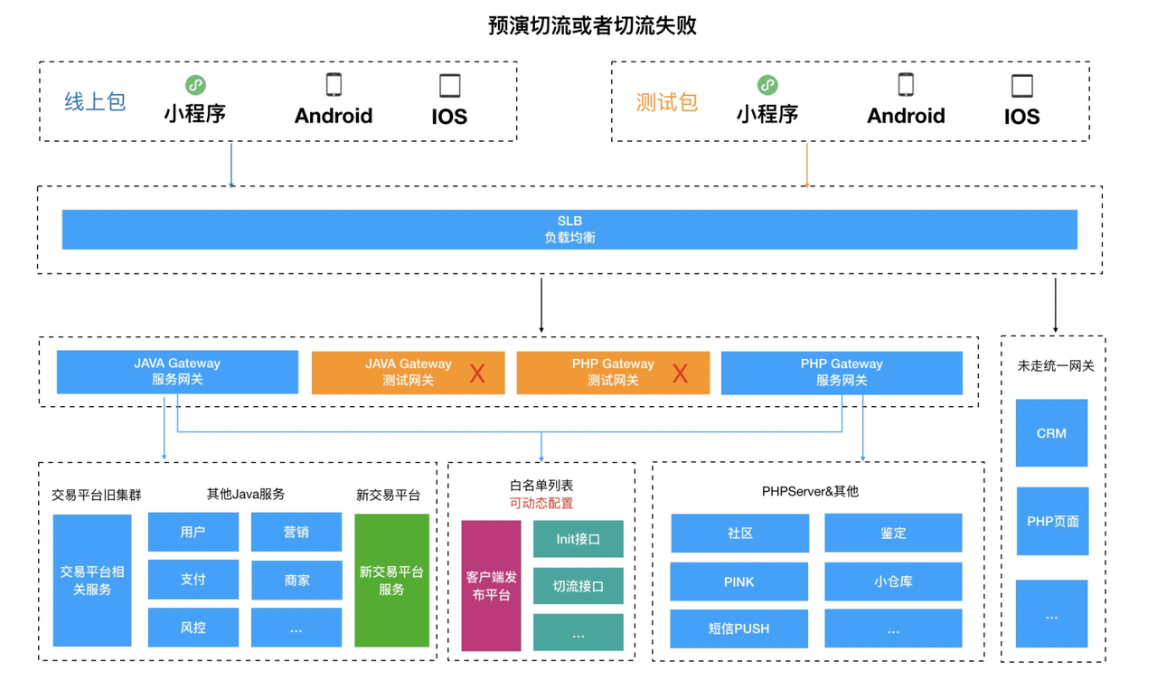 - App&小程序提前进行线上环境切流预演,预演的流程包括