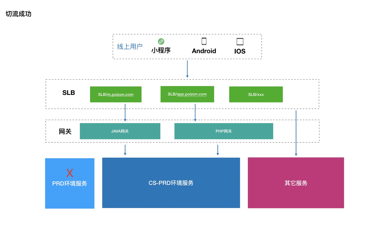 - 切流后的用户:旧功能可用 -> 开启切流路由切换到新功能