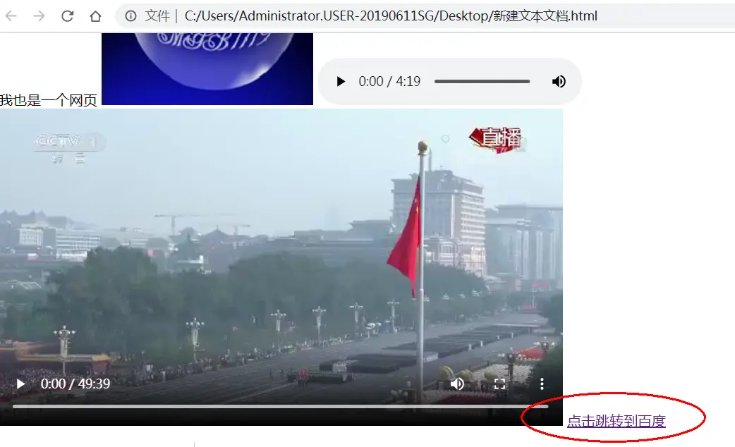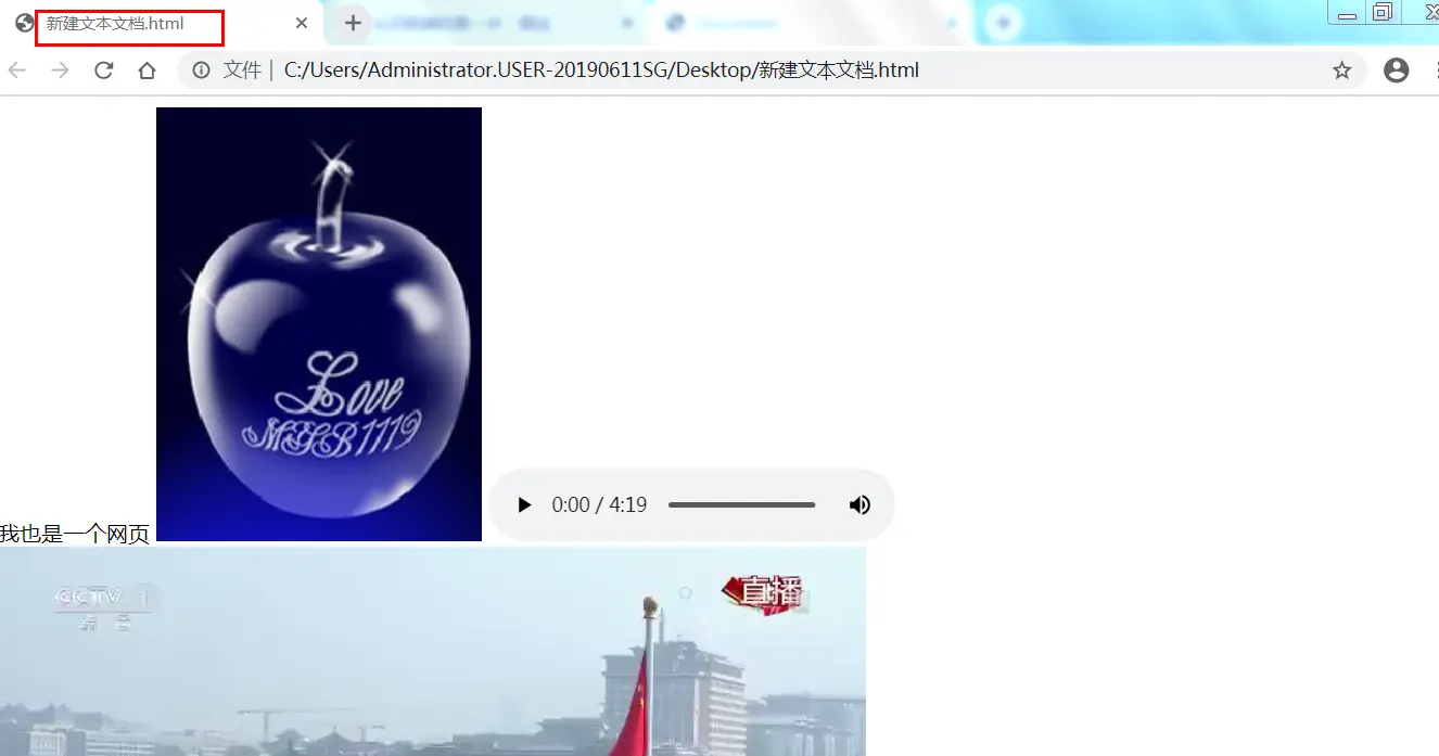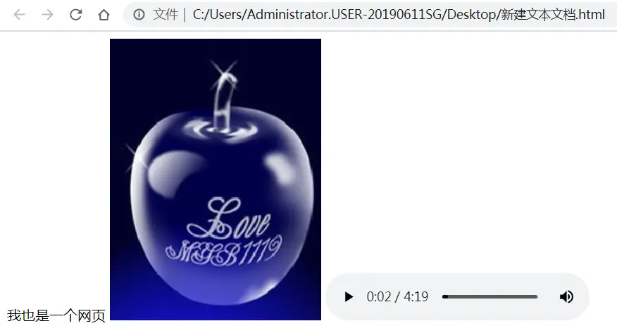 - 准备一个音频文件(最好是mp3格式的,假设命名为music.mp3),也是放在与上节建立的页面同级目录下