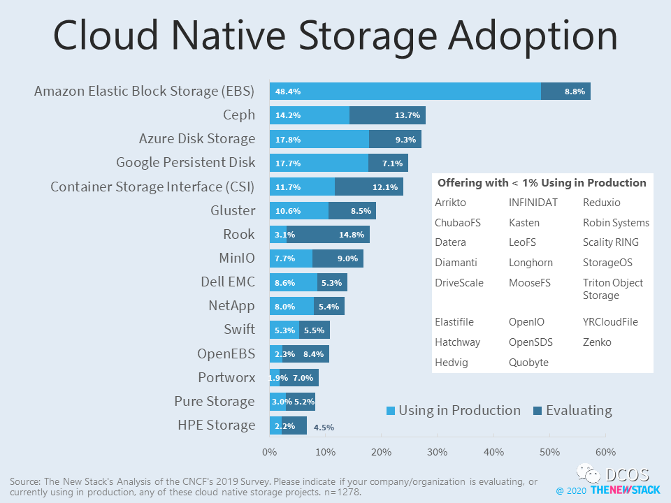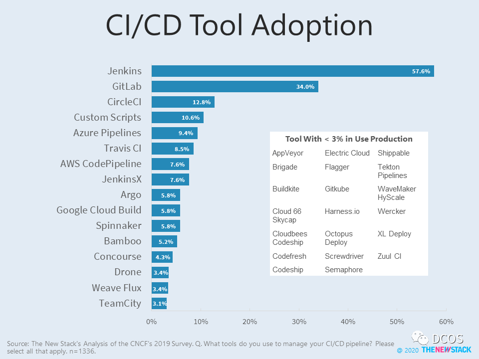 以下包括CI/CD工具和云原生存储选项的使用情况的图表。 可能与其他研究中的排名不同,但靠前的选择应该是准确的。如果在下一次经济衰退中面临削减技术投资的抉择,哪些技术/公司具有持久力?
