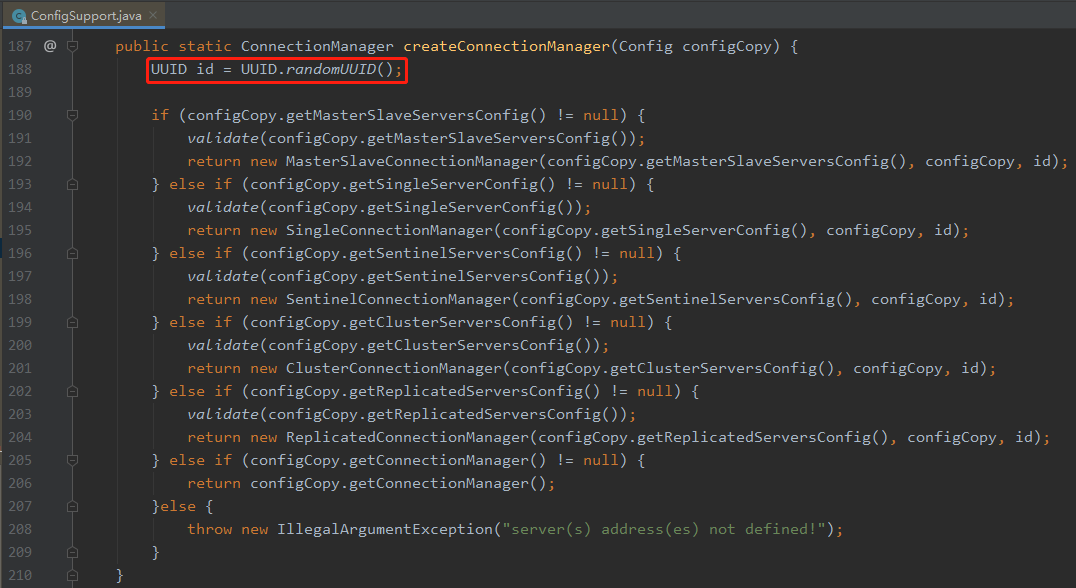 在创建 ConnectionManager 时,每个实现类的构造方法传的都是 UUID。