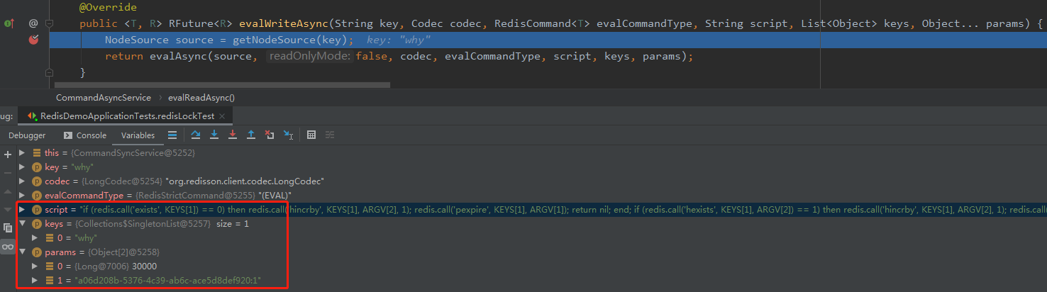 params:是 lua 脚本的参数。这里的 30000 就是 ARVG[1]。UUID:thredId 就是 ARVG[2]。