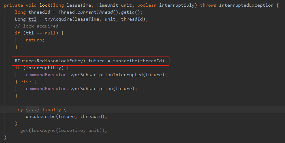所以加锁失败的线程就执行了 subscribe 方法,完成了订阅。
