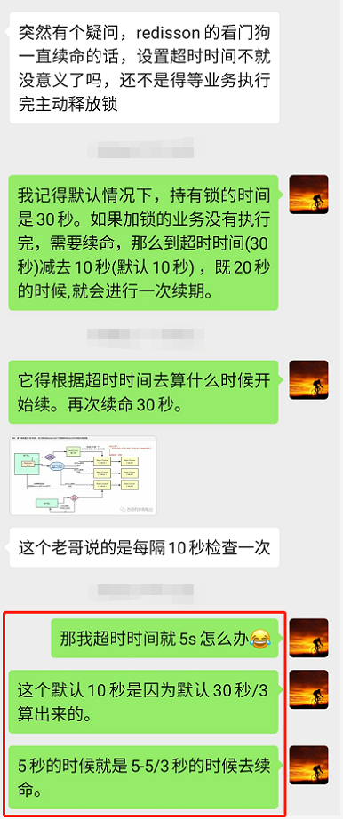 所以,60s -20s =40s。每当 key 的 ttl 返回 40 时,会进行续命操作。