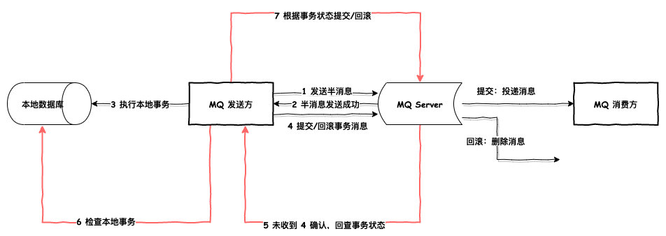 RocketMQ 若未收到提交或回滚的请求,将会定期去反查回调接口,然后可以根据反查结果决定回滚还是提交事务。