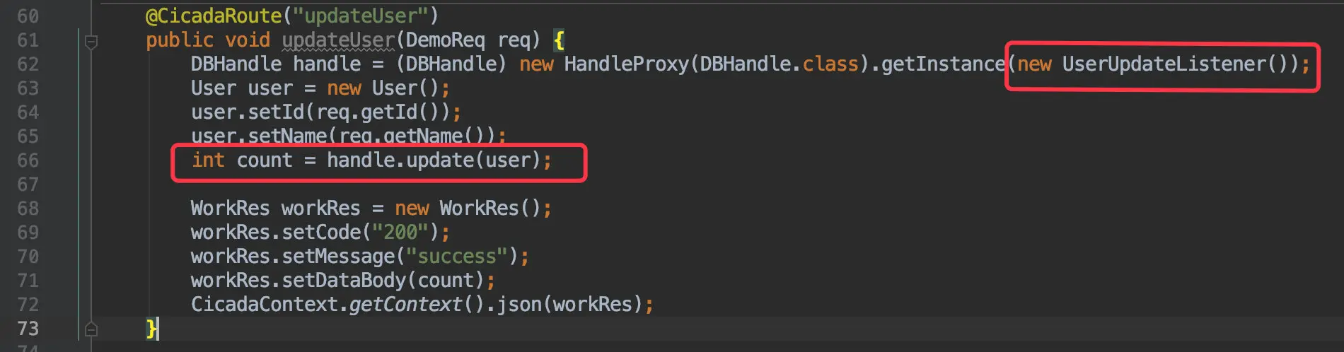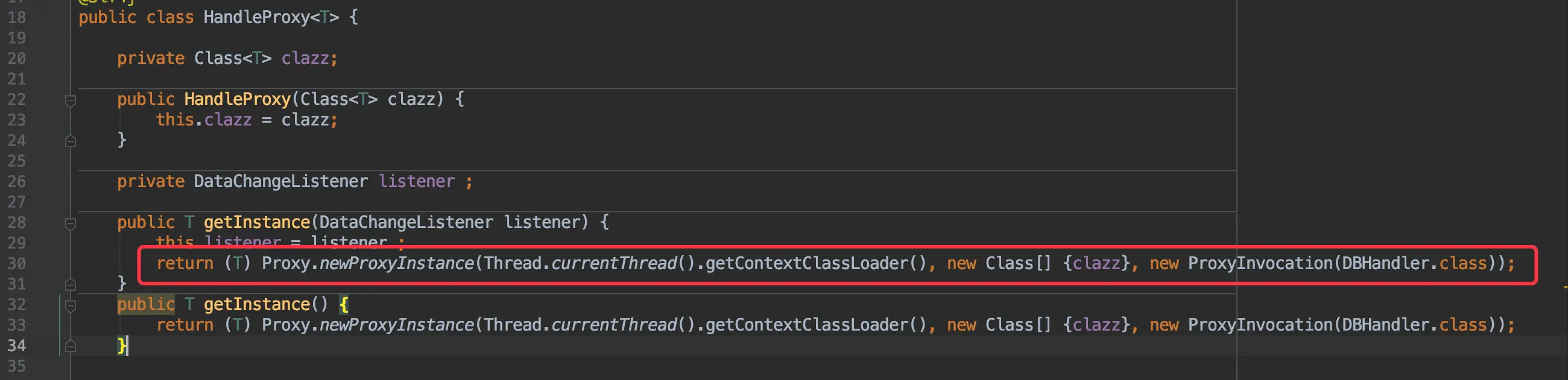 DBHandle handle = (DBHandle) new HandleProxy(DBHandle.class).getInstance(new UserSaveListener());