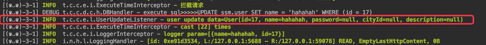 这样就实现了文初所提到的功能,便可以实现一些数据变化后需要执行的业务逻辑。