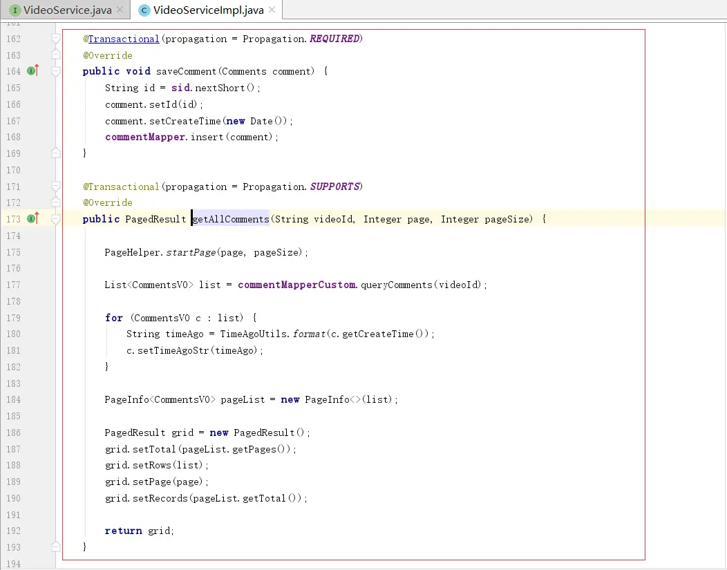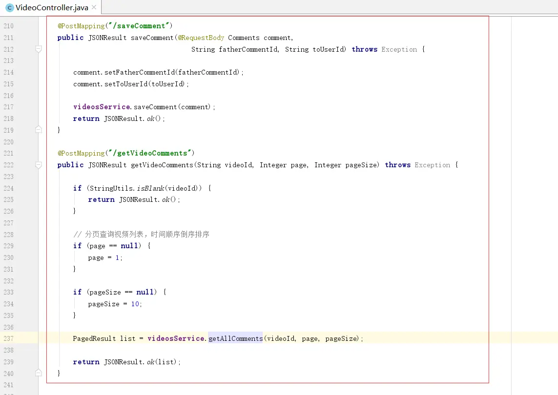 PagedResult list = videosService.getAllComments(videoId, page, pageSize);