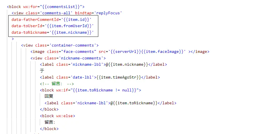 <block wx:for="{{commentsList}}">