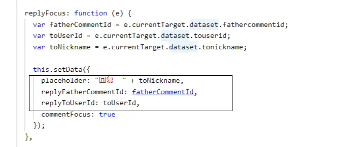 var fatherCommentId = e.currentTarget.dataset.replyfathercommentid;
