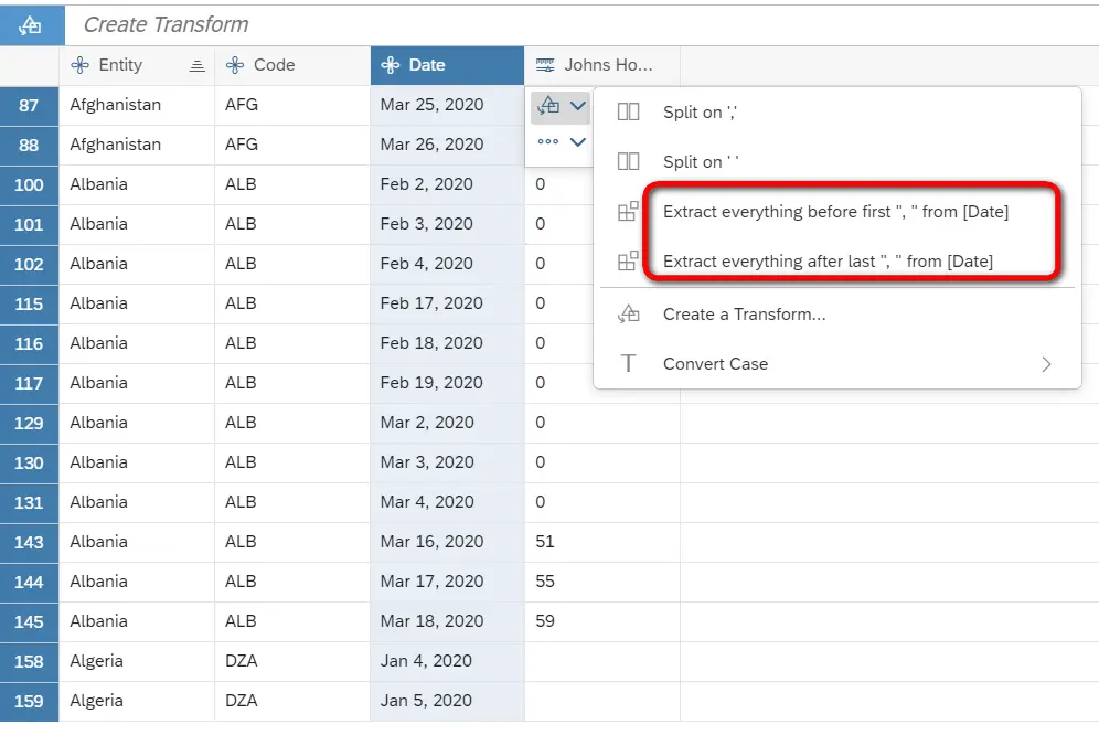 所以我们首先要将这一列的数据转换成SAP Analytics Cloud支持的日期格式,比如转换成DD-MM-YYYY, 即日,月和年之间用“-”分割。