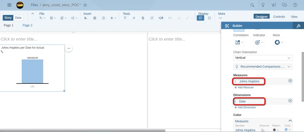 新冠肺炎的确诊人数选择为Measure,日期选择为Dimension: