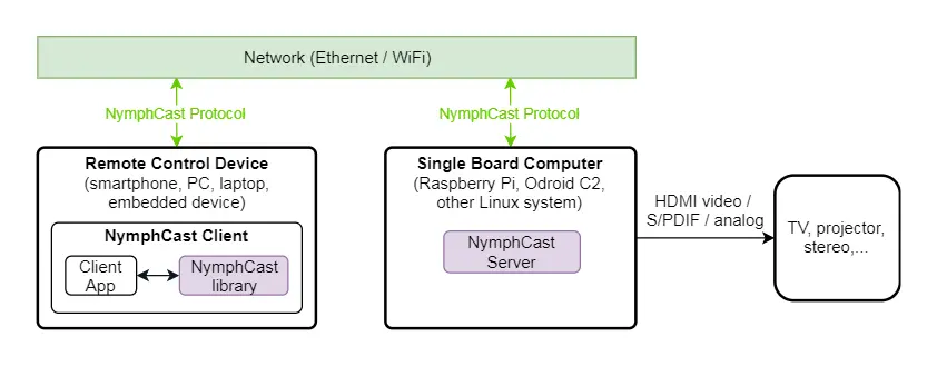 NymphCast 是一种软件解决方案,可将支持 Linux 的硬件转变为电视或有源扬声器的音频和视频源。它支持从各种客户端设备通过网络流式传输音频和视频,以及将互联网媒体流式传输到由客户端设备控制的 NymphCast 服务器。