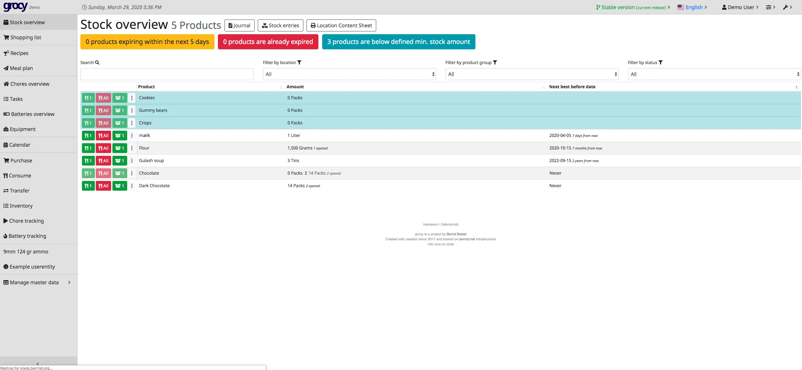 GitHub 地址→https://github.com/grocy/grocy
