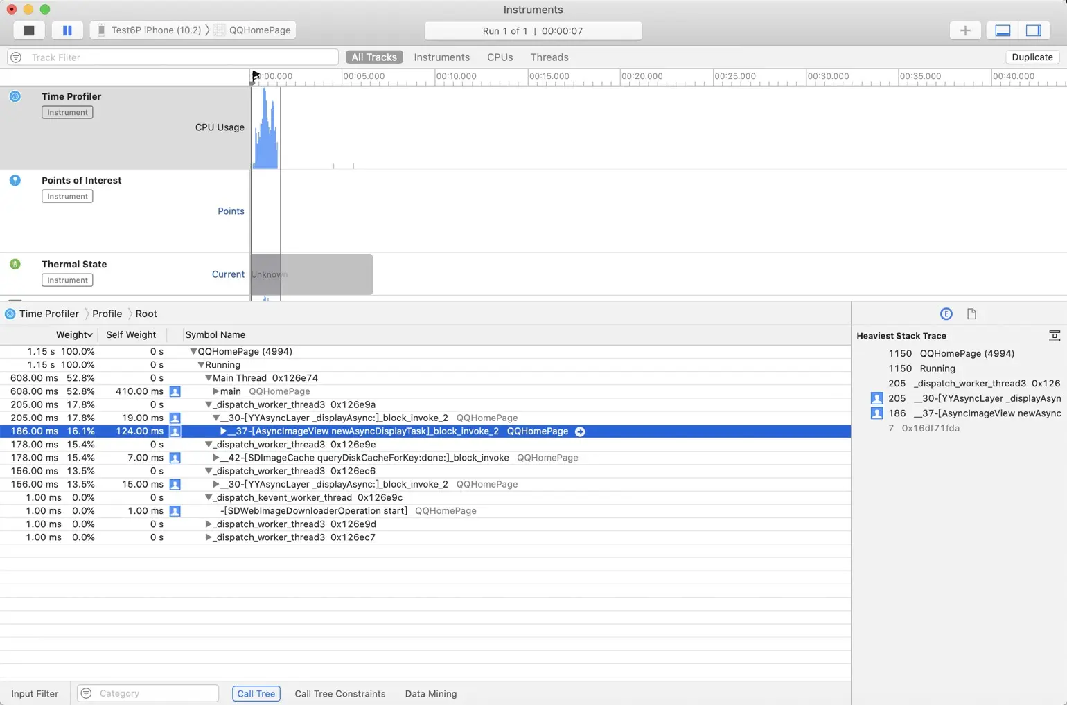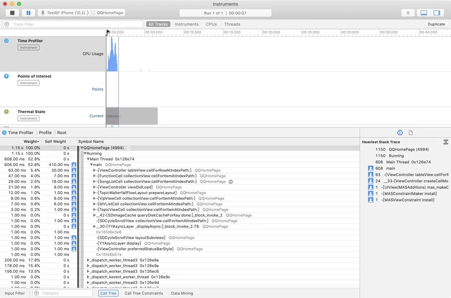 有了指导思想, 下面开始用Time Profiler找一下哪些任务占用较多CPU资源, 如果能预处理的, 就先预处理.