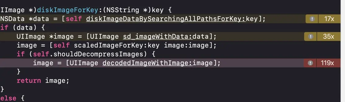 一个线程中的SDImageCache缓存加载主要是在图片解码的地方, 消耗了119ms.