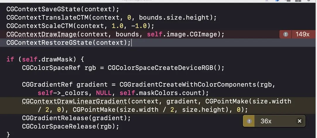 CGGradientRef gradient = CGGradientCreateWithColorComponents(rgb, self->_colors, NULL, self.maskColors.count);
