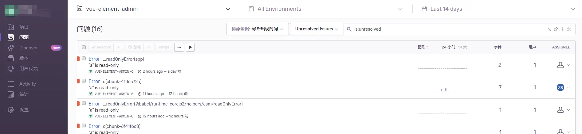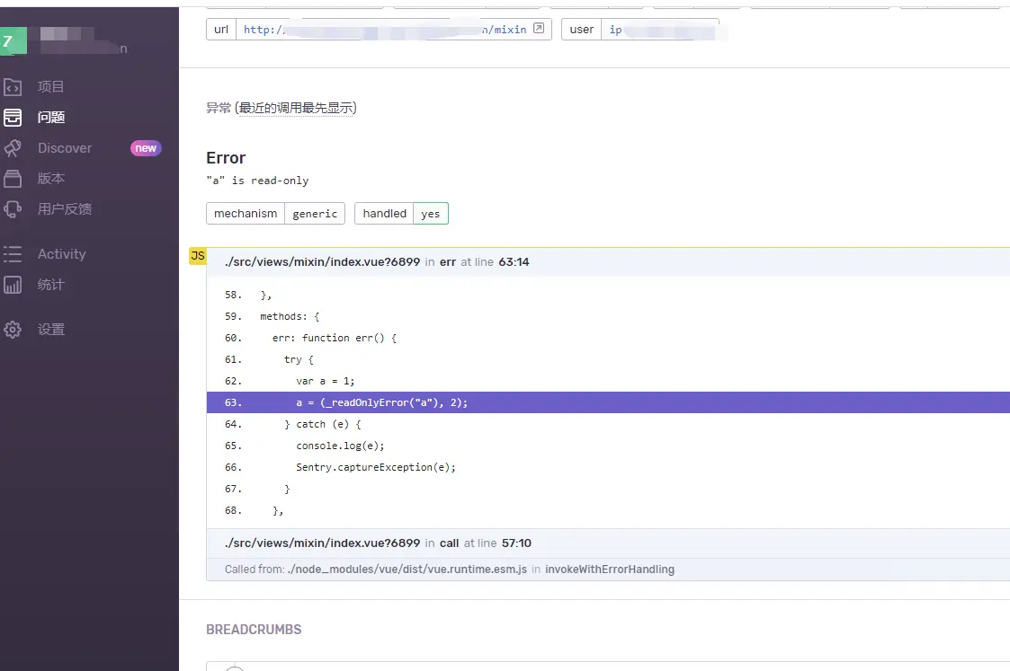 到这一步,我们就已经配置好了vue项目和sentry的联系,来使用一下吧~